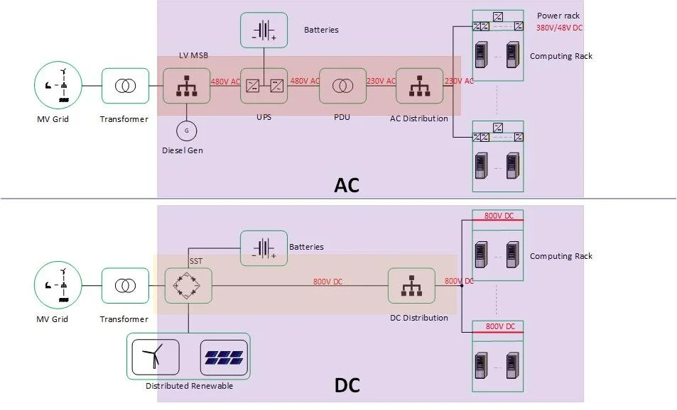 At the same time, a DC power distribution network simplifies power delivery, reduces conversion losses, and eliminates much of the infrastructure and heat overhead inherent in AC architectures.